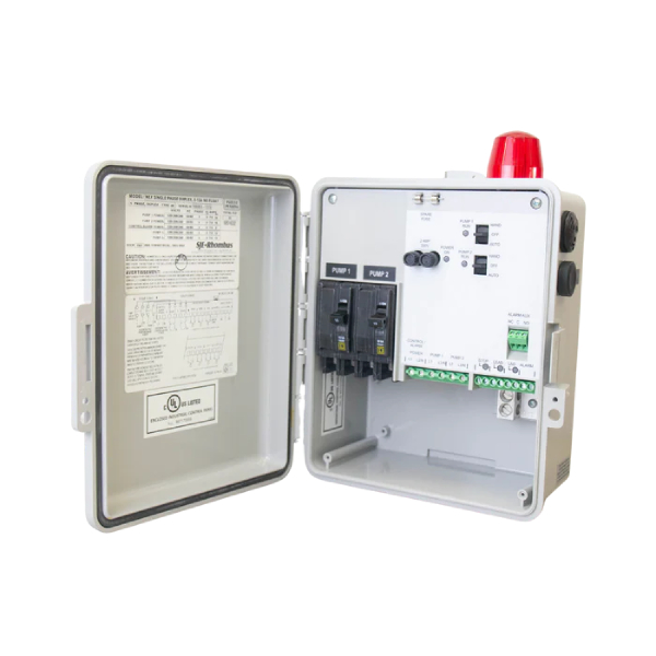 Un dispositivo electrónico que controla automáticamente dos o más bombas en sistemas de sumidero y desagüe, optimizando su funcionamiento y prolongando su vida útil. Alterna las bombas para evitar desgaste continuo e incluye un sistema de alarma que detecta fallas o situaciones anormales.